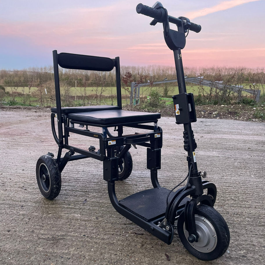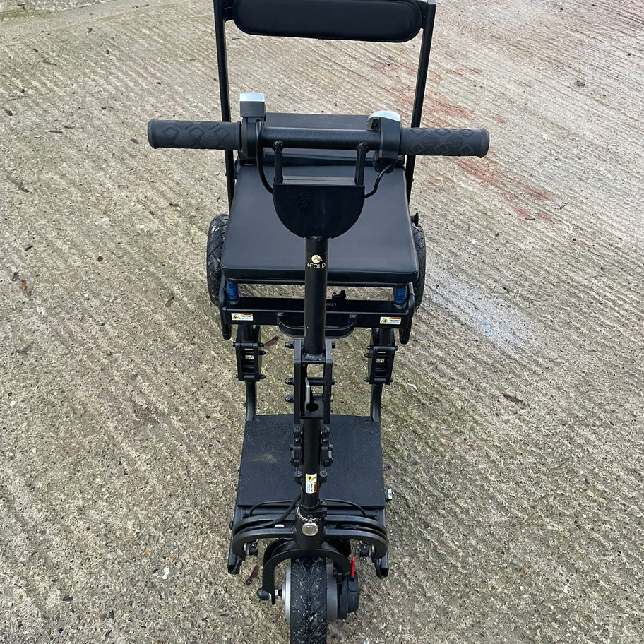 This used eFOLDi Lite is an ultra-lightweight folding mobility scooter weighing just 15 kg, making it one of the lightest mobility scooters available. Its compact folded size and simple operation make it exceptionally easy to handle, lift, and store.